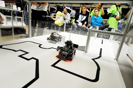 Robots identify victims within re-created disaster scenarios, varying in complexity from line-following to paths selections to take through obstacles on uneven terrain.