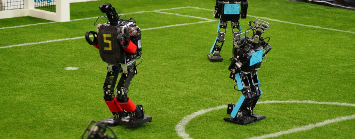 In the Humanoid League, autonomous robots with a human-like body plan and human-like senses play soccer against each other. Unlike humanoid robots outside the Humanoid League, the task of perception and world modelling is not simplified by using non-human-like range sensors. In addition to soccer competitions, technical challenges take place. Dynamic walking, running and kicking the ball while maintaining balance, visual perception of the ball, other players, and the field, self-localization, and team play are among the many research issues investigated in the Humanoid League. Several of the best autonomous humanoid robots in the world compete in the RoboCup Humanoid League.